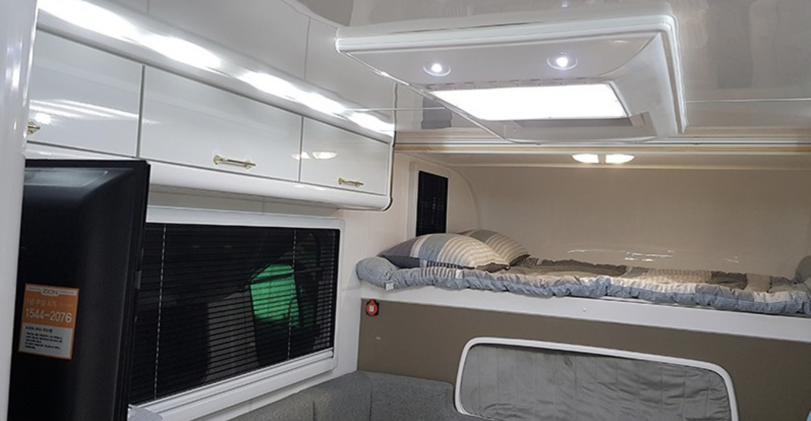운전석 위로 벙커 베드가 구성되어 추가 침실