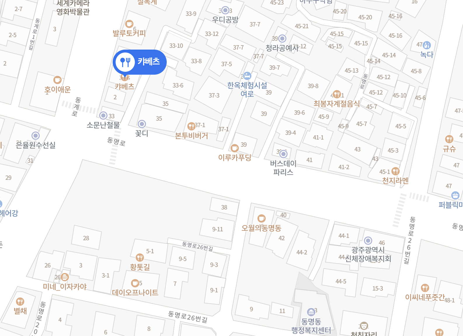 | 위치 | 광주 동구 동명로 33-3 캬베츠 |