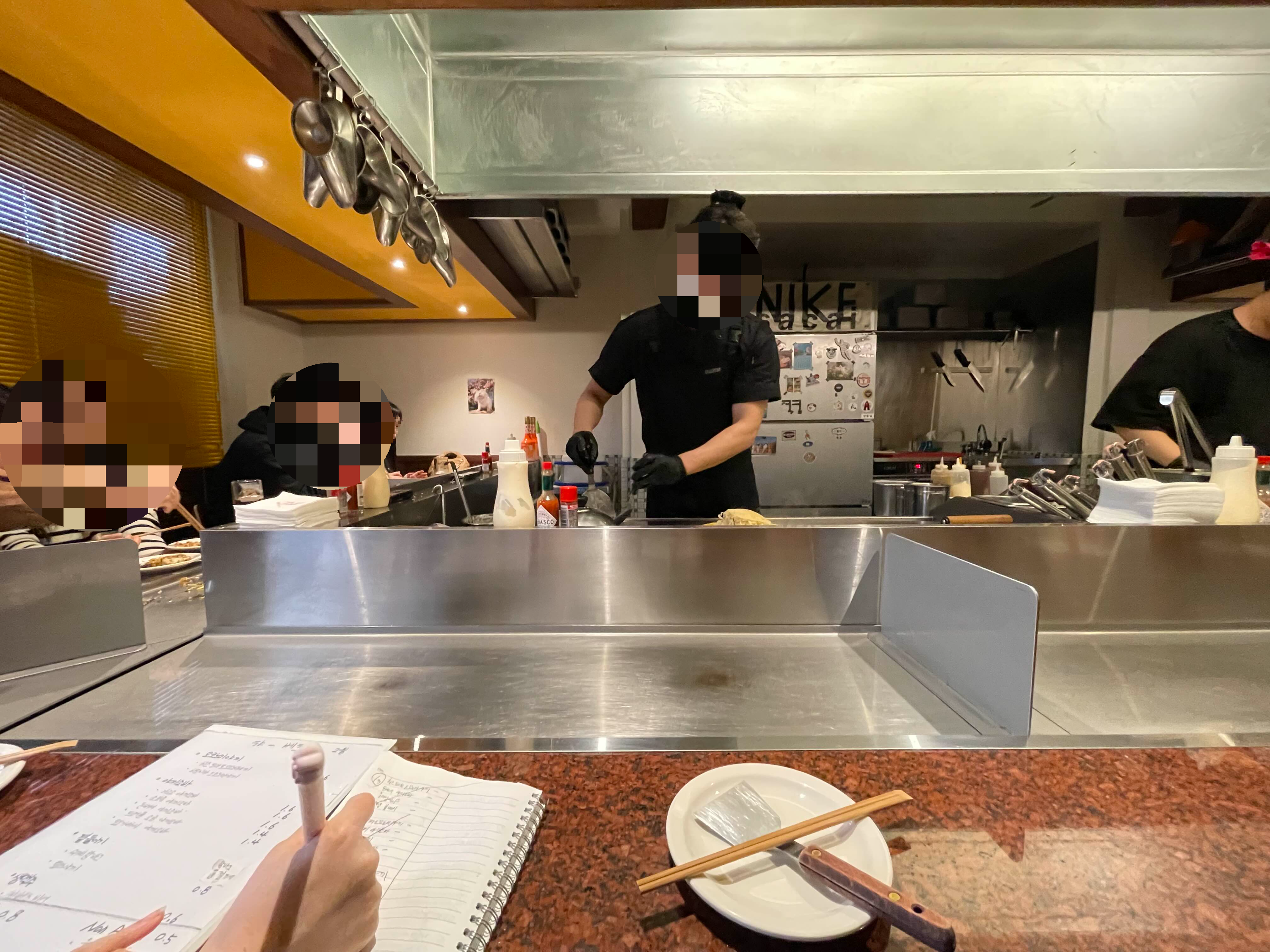 철판요리를 구경하며, 볼거리가 있어 재미있고,